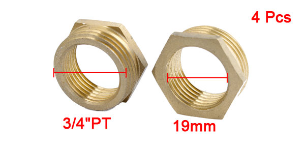 Product Name Pipe Fittings Type Male to Female Thread Color Brass Tone Material Metal Female Thread Size 1/2"NPT Female Thread Dia 19mm Male Thread Size 3/4"PT Male Thread Dia 26mm Total Size 11 x 26mm / 0.43" x 1.02" (L*Max,D) Weight 78g Package Content 4 x Pneumatic Pipe Fittings - Reviews