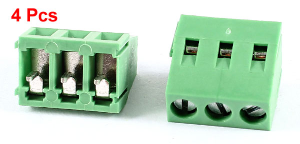 4 Pcs 3 Pin 5mm Spacing PCB Mount Screw Terminal Block 10A 300V AWG22-12
