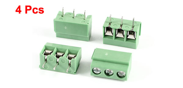 4 Pcs 3 Pole 5mm Pitch PCB Mount Screw Terminal Block 8A 300V Green