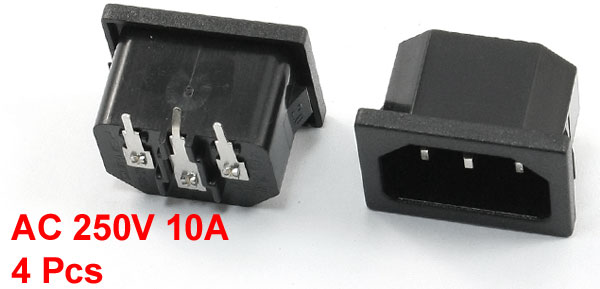 4 Pcs 3 Right Angle Pin IEC320 C14 Inlet Power Socket AC 250V 10Amp