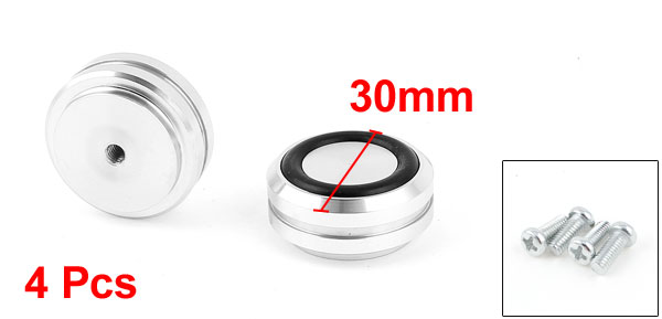 Product Name Speaker Amplifier Feet Pads Material Aluminum Alloy, Rubber Size 30x13mm / 1.2" x 0.5"(D*H) Mount Screw M4 Color Silver Tone Weight 99g Package Content 4 x Speaker Amplifier Feet Pads
