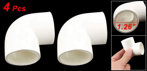 4 Pcs 32mm Dia 90 Angle Degree Elbow PVC Pipe Fittings Adapters Connectors