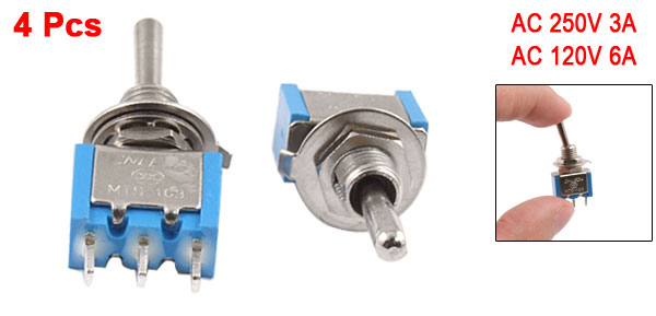 Product Name Toggle Switch Rating AC 250V, 3A AC 120V, 6A Position Quantity 3(ON/OFF/ON) Type SPDT Terminals Quantity 3 Thread Diameter 0.57cm / 0.224" Overall Size 3.2 x 1.3 x 0.7cm / 1.26" x 0.5" x 0.27"(L*W*T) Weight 20g Package Content 4 Pcs x Toggle Switch - Reviews