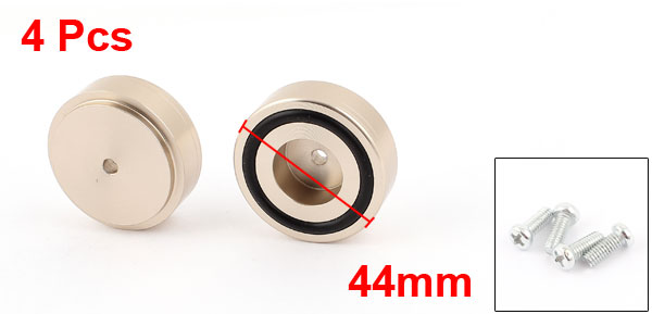 Product Name Speaker Amplifier Feet Pads Material Aluminum Alloy, Rubber Size 44x17mm / 1.73" x 0.67"(D*H) Mount Screw M4 Color GoldTone Weight 224g Package Content 4 x Speaker Amplifier Feet Pads