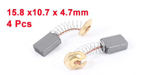 Product Name Motor Carbon Brush Fitness Generic Electric Motor Carbon Brush Size 15.8 x10.7 x 4.7mm/ 5/8" x 27/64" x 3/16"(L*W*H) Total Length(Approx) 4.1cm/ 1.61" (When Spring Stretching) Net Weight 16g Package Content 2 Pairs x Motor Carbon Brushs - Reviews