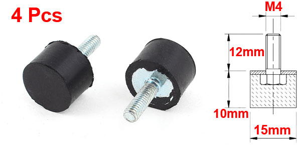 Product Name Rubber Vibration Isolator Mounts Material Metal, Rubber Thread Size (Approx.) M4 x 12mm(Dia.* L) Rubber Size (Approx.) 15 x 10mm / 5/8" x 3/8" (Dia.*H) Overall Height(Approx) 22mm / 0.8" Color Black, Silver Tone Weight 17g Package Content 4pcs x Rubber Vibration Isolator Mounts - Reviews