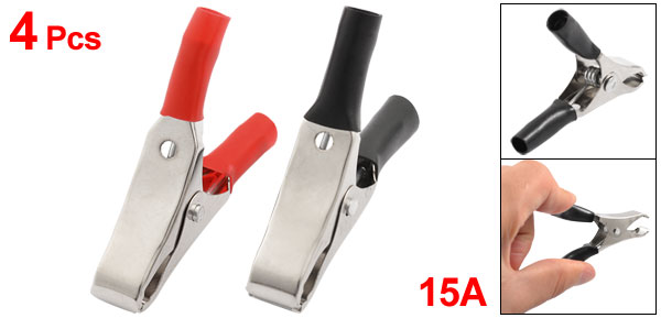 4 Pcs 54mm 15A Plastic Covered Battery Metal Alligator Clips Clamps