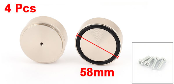 Product Name Speaker Amplifier Feet Pads Material Aluminum Alloy, Rubber Size 58x22mm / 2.28" x 0.87"(D*H) Mount Screw M4 Color Gold Tone Weight 592g Package Content 4 x Speaker Amplifier Feet Pads