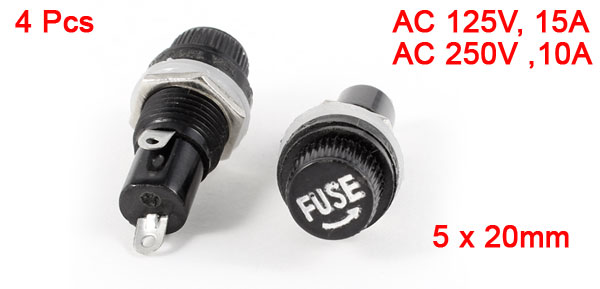 4 Pcs 5mm x 20mm Fuse Tube Holder AC 125V 15A 250V 10A