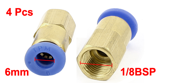 4 Pcs 6mm Push in 1/8BSP Female Thread Quick Connector Pneumatic Air Fittings