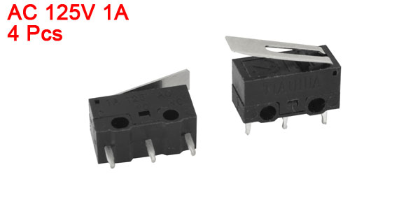 4 Pcs AC 125V 1A 3P SPDT Momentary Short Lever Arm Momentary Micro Switch