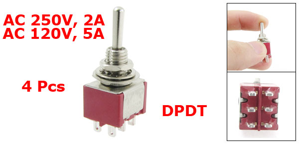 Action Type Momentary Pin Number 6 Pins Position 3 Positions(ON/OFF/ON) Type DPDT(Latching) Cap Diameter 5.8mm / 0.228" Body Size(Approx.) 13 x 11.6 x 10mm / 0.5" x 0.46" x 0.4"(L*W*T) Total Height 33mm / 1.3" Material Plastic, Metal Weight 24g Package Content 4 Pcs x Toggle Switch - Reviews