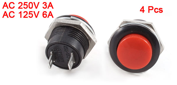4 Pcs AC 250V/3A 125V/6A SPST 1NO 1NC 2 Pins Momentary Red Push Button Switch