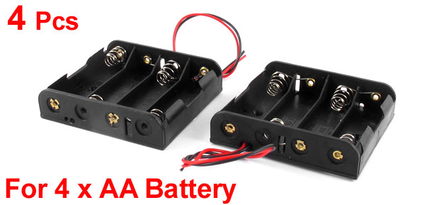 4 Pcs Black 4 x 1.5V AA Battery Batteries Holder Storage Case w Leads Wire