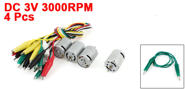 4 Pcs DC 3V 2Pin Magnetic Electric Motor 3000RPM w 10 Pieces Alligator Clip Wire