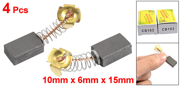 Product Name Carbon Brush Carbon Brush Size 10 x 6 x 15mm/ 25/64" x 15/32" x 19/32" (L*W*T) Total Length (Approx) 40mm/ 1.6" Material Carbon & Metal Color Black, Silver Tone, Brass Tone Net Weight 10g Package Content 4 x Carbon Brushes - Reviews