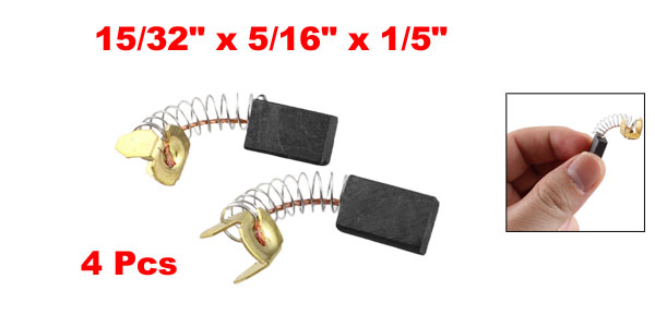 Product Name Motor Carbon Brush Material Carbon & Metal Color Black & Gold Tone Carbon Brush Size (Approx.) 12 x 8 x 5mm/ 15/32" x 5/16" x 1/5" (L*W*T) Total Length(Approx) 32mm/ 1.3" (When Spring Stretching) Net Weight 6g Package Content 4 x Motor Carbon Brush - Reviews