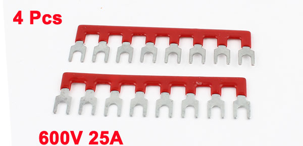 4 Pcs Fork Type 8 Postions Pre Insulated Terminal Strip Block Red 600V 25A