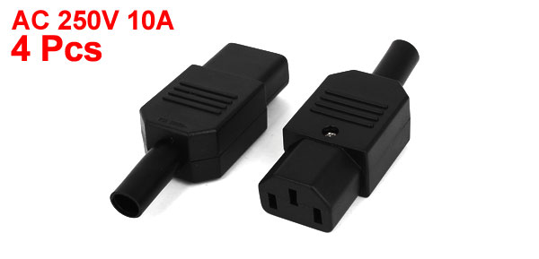 4 Pcs IEC320 C13 Female Plug Inline Power Rewirable Adapter Socket AC 250V 10A