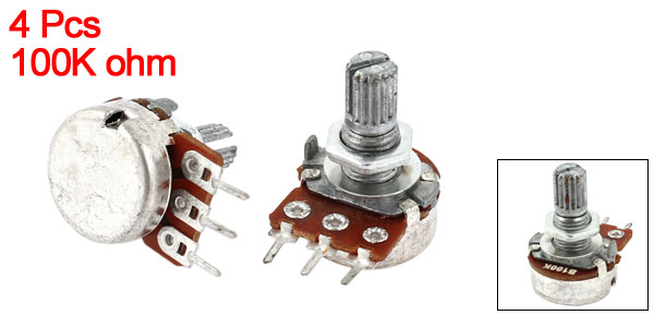 4 Pcs One Linear Knurled Shaft Control Volume Potentiometers 100K Ohm WH148