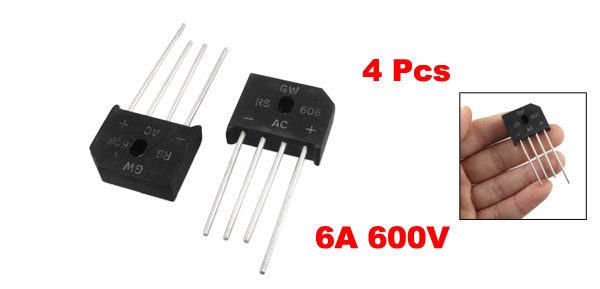 4 Pcs PCB 6A 600V Full Wave Single Phase Bridge Rectifiers RS606