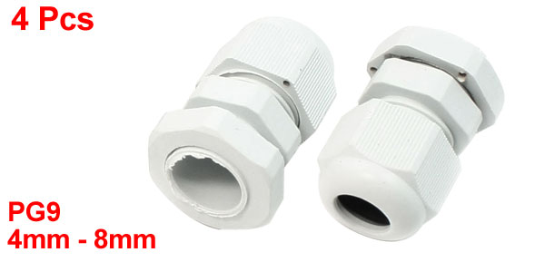 4 Pcs PG9 Off White Plastic 4mm to 8mm Cable Glands Connectors