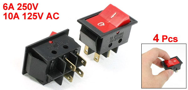4 Pcs Red Button On/Off DPDT Boat Rocker Switch 6A/250V 10A/125V AC