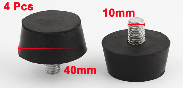 4 Pcs Rubber Screw On Type M10 40mm Head Diameter Handle Knob Black