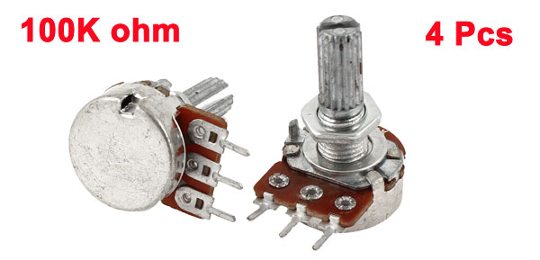 Details4 Pcs Single Linear Knurled Shaft Control Volume Potentiometers 100K Ohm WH148  Product Name Potentiometer Model WH148 Resistance Value 100K ohm Adjustment Type Top Adjustment Type Single Linear(Type B) Features Knurled Shaft Total Rotational Angle 300C Terminal Number 3 Shaft Diameter 6mm / 0.24" Rotary Shaft Length 13mm / 0.51" Total Shaft Length 20mm/0.79" Mounting Hole 7mm / 0.28" Base Size 16 x 8.5mm / 0.35" x 0.43"(D*H) Material Metal , Plastic Color As Picture Show Weight 29g Package 4 x Potentiometer