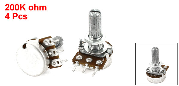 Product Name Potentiometer Model WH148 Resistance Value 200K ohm Adjustment Type Top Adjustment Type Single Linear(Type B) Features Knurled Shaft Total Rotational Angle 300C Terminal Number 3 Shaft Diameter 6mm / 0.24" Rotary Shaft Length 13mm / 0.51" Total Shaft Length 20mm/0.79" Mounting Hole 7mm / 0.28" Base Size 16 x 8.5mm / 0.35" x 0.43"(D*H) Material Metal , Plastic Color As Picture Show Weight 29g Package 4 x Potentiometer - Reviews