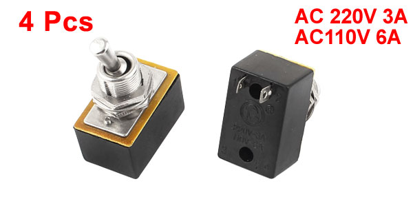 Main Color Black, Silver Tone Brand DMiotech Country of Manufacture CHINA Type SPST (Latching) Material Metal, Plastic Overall Height 45.5mm/1.8" Product Name Toggle Switch Net Weight 77g Package Content 4 Pcs x Toggle Switch Main Body Size 28 x 18 x 15mm/1.1" x 0.7" x 0.6"(L*W*T) Position 2(ON/OFF) Switch Rating AC 220V 3A/AC 110V 6A Mounting Thread Dia 12mm/0.47" - Reviews