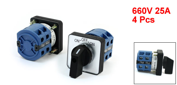 4 Pcs SZW26-25B 660V 25A 8 Screw Terminal 2-Pole Rotary Changeover Switch