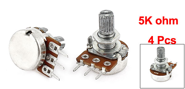 4 Pcs Type B Single Linear 15mm Shaft Rotary Taper Potentiometers B5K 5K Ohm