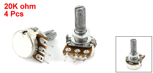 4 Pcs Type B Single Linear 20mm Shaft Rotary Taper Potentiometers 20K Ohm