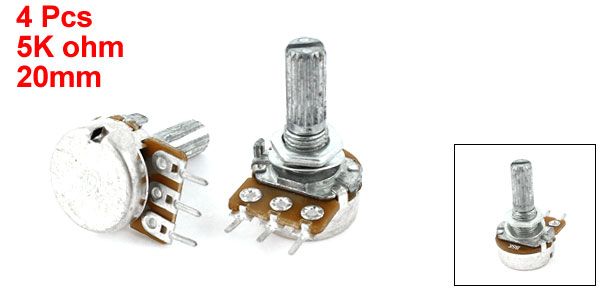 4 Pcs Type B Single Linear 20mm Shaft Rotary Taper Potentiometers B5K 5K Ohm