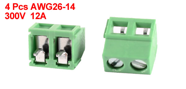 Product Name PCB Terminal Block Material Plastic Wire Gauge AWG26-14 Rated Value 300V, 12A Poles 2P Pin Distance 5mm/0.2" Total Size 14 x 10 x 8mm/0.55" x 0.39" x 0.31"(L*W*H) Color Green Weight 8g Package Content 4 x 2P PCBTerminal Block - Reviews