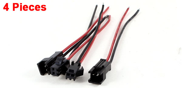 4 Pieces Black Red 3.9" Length 2Pin EL Wires Connectors Adapters