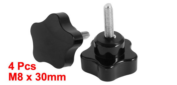 4 Pieces M8 x 30mm Male Threaded Metal Clamping Star Knobs Grips Black