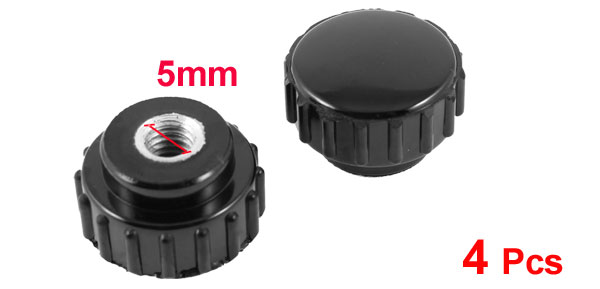 Details4 Pieces Spare Part 5mm Dia Female Thread 14mm High Knurled Knob Black  Product Name Knurled Knob Type Screw On Head Diameter(Approx) 20mm / 0.5" Thread Hole Depth(Approx) 8mm / 0.31" Thread Hole Diameter(Approx) 5mm / 0.2"(M6) Overall Height 14mm / 0.55" Material Metal, Plastic Color Black, Silver Tone Net Weight 34g Package Content 4 x Knurled Knob