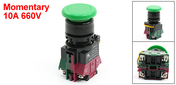Product Name Push Button Switch Material Plastic, Metal Action Type Momentary Contact Type 1NO, 1NC Ith 10A Ui 660V Terminal Number 4 Screw Terminals Button Diameter (Approx.) 35mm / 1.4" Mounting Hole Diameter 21mm / 0.83" Overall Size(Approx.) 41 x 30 x 72mm / 1.6" x 1.2" x 2.8"(L*W*H) Main Color Red, Black, Green Weight 43g Package Content 1 x Push Button Switch - Reviews