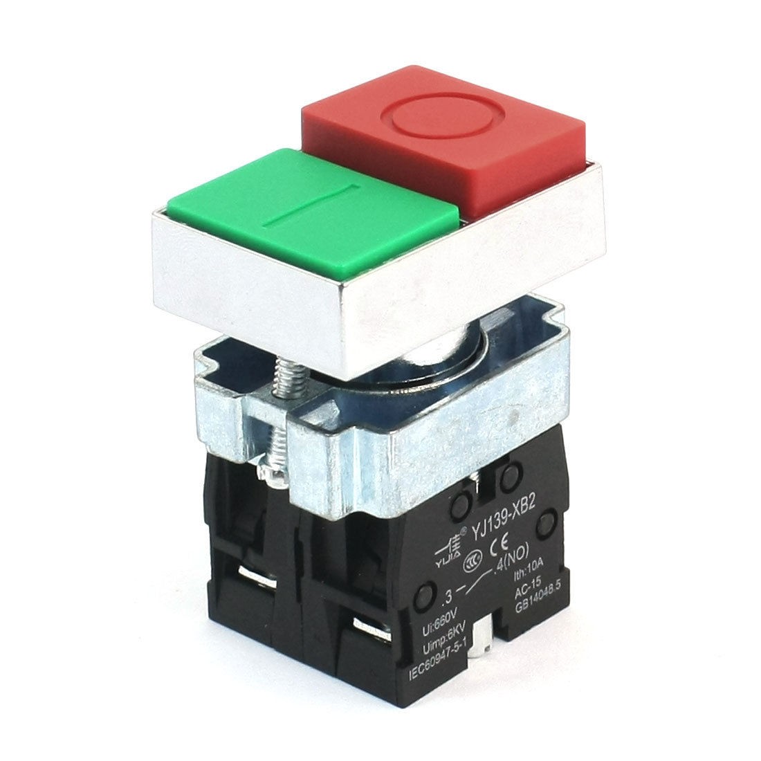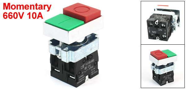 Details4-Terminals O/I Red Green Buttons DPST Momentary Button Switch 660V 10A  Product Name Push Button Switch Model YJ139-XB2-11B Action Type Momentary Contact Type DPST Ith 10A Ui 660V Uimp 6kV Terminal Quantity 4 Panel Cutout Diameter 21mm / 0.83" Fit Panel Max. Thickness 6mm / 0.24" Total Size(Approx) 42 x 30 x 58mm / 1.7" x 1.2" x 2.3" (L*W*H) External Material Plastic, Electric Parts, Metal Main Color As Picture Shown Weight 87g Package Content 1 x Push Button Switch