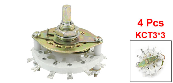 Product Name Rotary Switch Model KCT3*3 Material Metal, Plastic Dimensions(knob not included) 54 x 49mm / 2.1" x 1.9"(Max.D*H) Fit Mounting Hole Diameter 10mm / 0.4" Shaft Diameter 6mm/0.24" Pin Number 12 Contact Type 3 Pole 3 Position Total Weight 188g Package Content 4 x Rotary Switches - Reviews