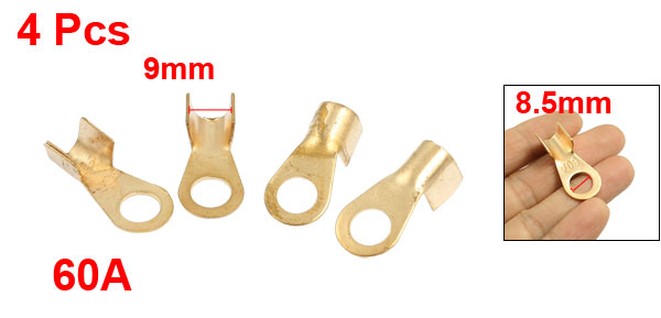4 x 8.5mm Stud Bare Battery Copper Ring Lug Terminal Wire Connector 60A