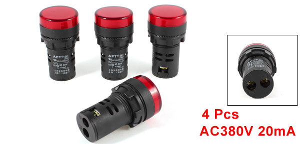 4 x AC 380V 20mA Max Current 27mm Dia Top Red LED Pilot Light Lamp AD16-22D/S