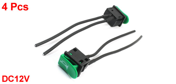 4 x DC12V Momentary SPST Green Horn Button Rocker Shaped Switches w Leads