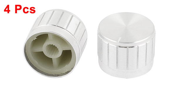4 x Silver Tone Plastic Potentiometer Rotary Control Knobs Caps 17x23mm