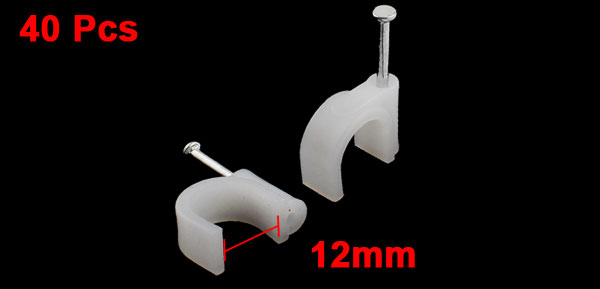 40 Pcs 12mm Width Cable Nail Attached Circle Clips Saddle White