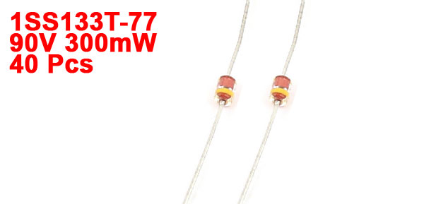 Details40 Pcs 1SS133T-77 DO-34 High Speed Switching Diodes 90V 300mW  Product Name Switching Diodes Model 1SS133T-77 Package Type DO-34 Type Axial Lead Reverse Voltage 90V Peak Forward Current 400mA Power 300mW Overall Size 35 x 2mm/1.4" x 0.08"(L*D) Weight 4g Package Content 40 x Switching Diodes