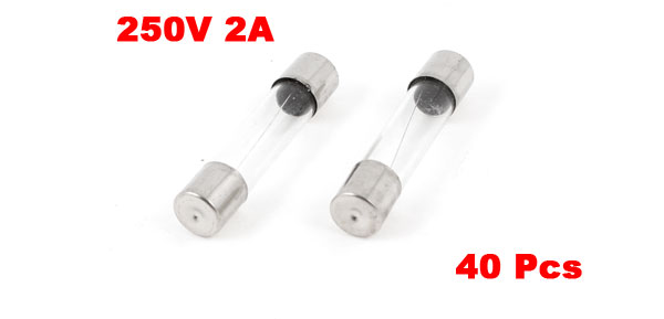 40 Pcs 250 Volts 2Amp Fast Blow Type Glass Tube Fuses 6mm x 30mm