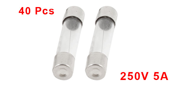 40 Pcs 250 Volts 5Amp Fast Blow Type Glass Tube Fuses 6mm x 30mm